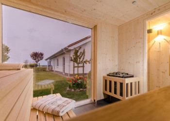 When you return home from a walk in the sea air, an extensive hike around the island of Hiddensee or along the beach near us in the north of the island of Rügen, a warm welcome awaits you. You can sit in front of a roaring fire and enjoy the view of the lighthouse, and perhaps try out our sauna too. It offers a place of rest and relaxation, and the large mirrored window with its panoramic view makes you feel at one with nature. Inside, you can relax in its beneficial warmth and enjoy the view over the garden and the Baltic landscape with its unique species of birds.